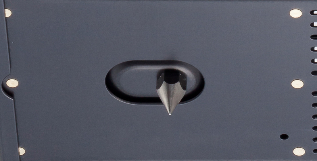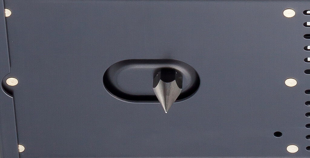 Ein Fuß ist direkt unter dem Transformator positioniert, um dessen Vibrationen gezielt aus dem Gehäuse abzuleiten. Zudem arbeitet das Gerät mit einer Dreipunkt-Abstützung und Spike-Pins, um chassisseitige Resonanzeinflüsse zu reduzieren und ein sauber konturiertes Klangbild zu unterstützen.
