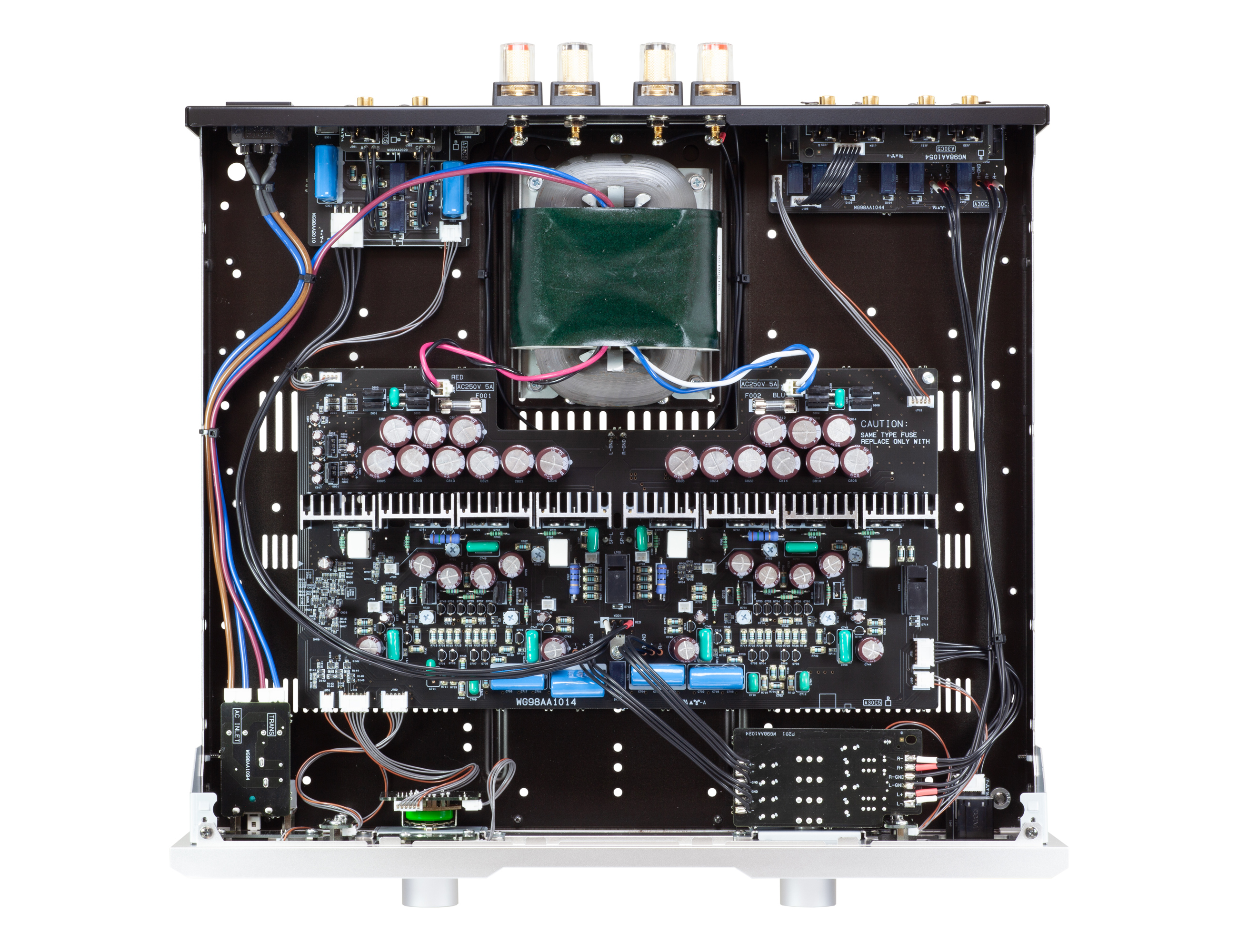 Die diskrete, vollständig rückkopplungsfreie Verstärkerschaltung wird konsequent übernommen. Der Aufbau folgt einem reduzierten Ansatz: Eingangswahl und Lautstärkeregelung sind direkt an die Endverstärkersektion gekoppelt – in der gleichen Grundphilosophie wie bei den Flaggschiffmodellen (z. B. A-3).